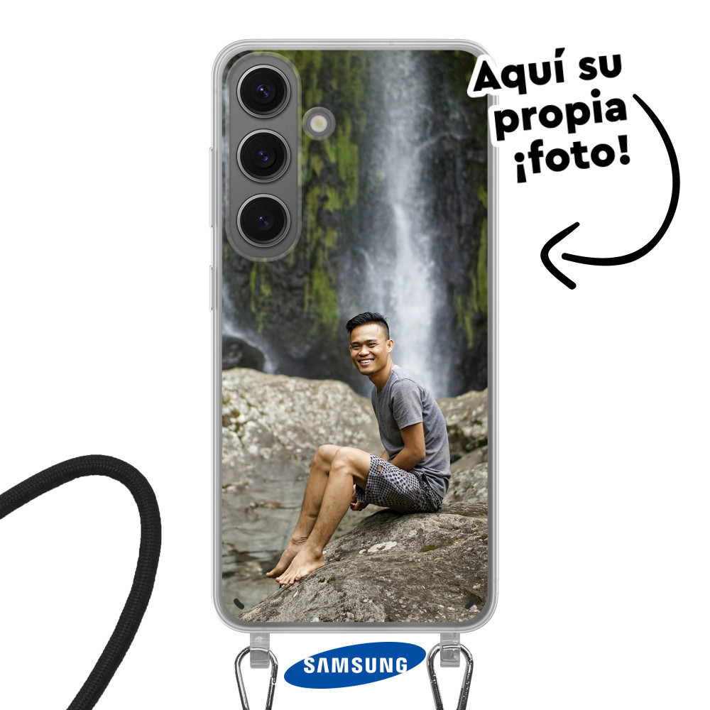 ¡Descubre la última funda para Samsung Galaxy S24! Funda protectora y flexible tipo soft case Samsung con cable para llevar alrededor de tu cuerpo. Tu diseño en colores vibrantes con impresión UV.